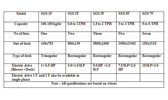 Suitable for all types of grains, seeds and granular products pulses etc. Removes impurities on the specific density principle-grains same in size but different in weight.